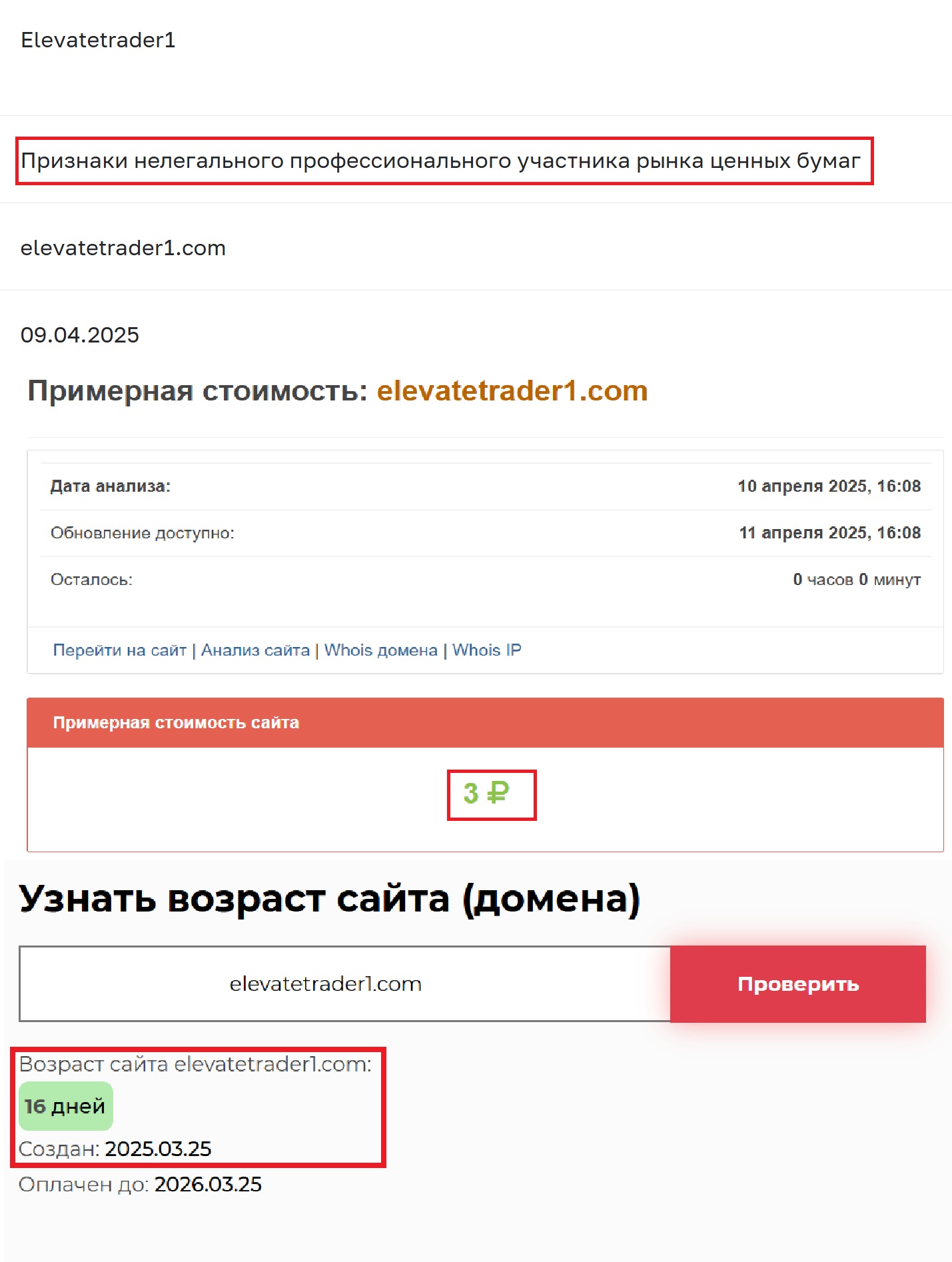 Что особенно настораживает, так это стоимость домена. Три рубля. Даже не смешно. Это что — цена серьезного бизнеса? Уважаемая компания с реальными планами на будущее не будет экономить на базовых вещах. А тут — явная халтура. Причем домен зарегистрирован всего лишь 16 дней назад, хотя аферисты рассказывают о многолетнем опыте. Возникает вопрос: что они делали все эти годы?