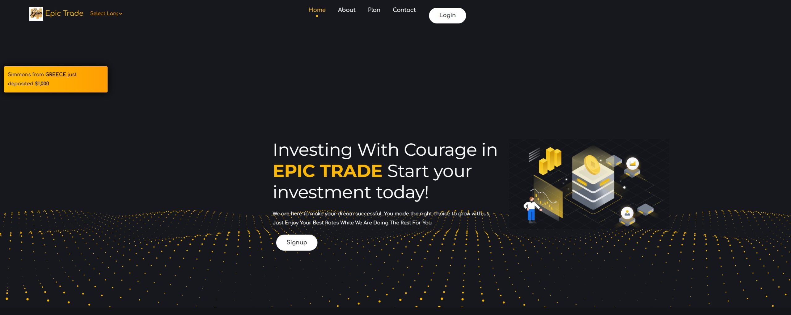 Когда заходишь на сайт epic-trade.com, становится очевидно, что сделан он «на коленке». Нет, правда. Шаблон, который используют десятки и сотни таких же псевдоплатформ. Поменяли логотип, чуть подкрутили цветовую схему — и вуаля, готов «новый» проект. Весьма креативно, только это не внушает никакого доверия. Заметили? Нет никакой конкретики: кто управляет платформой, где зарегистрирована компания, каков механизм инвестирования, где условия сотрудничества? Все размыто, скрыто за общими фразами. И это странно, согласитесь, ведь легальные организации, наоборот, стараются быть максимально прозрачными. А тут — тишина.