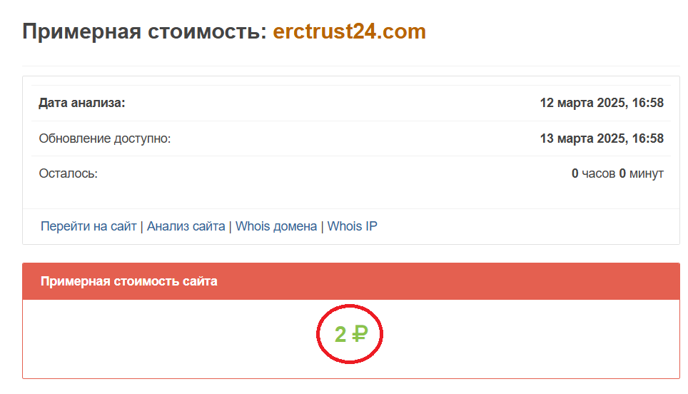 Недобросовестность данного обменника подтверждается результатами его проверки. Начнем с того, что эта контора была создана менее месяца назад (18 февраля 2025 года), но уже успела собрать в Интернете парочку негативных отзывов и обзоров. Примерная стоимость домена проекта равняется всего к 2 рублям, что лишь усиливает подозрения в мошенничестве.