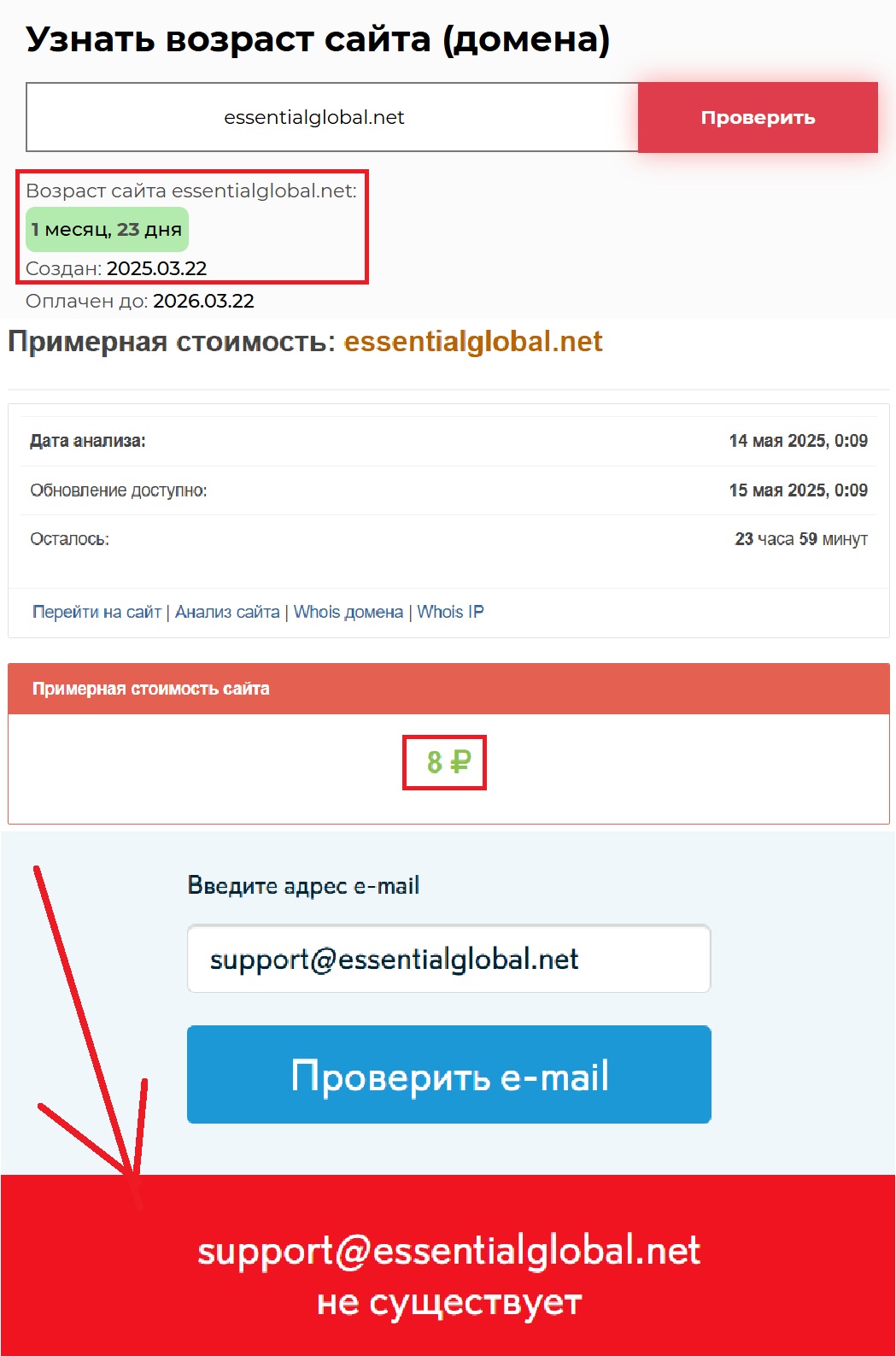 И вот тут наступает самое интересное. Ну, казалось бы, ладно — ошибки бывают. Но когда выясняется, что контактные данные в виде почты support@essentialglobal.net, адреса 101 Gordon Terrace BASCOTE CV23 1UE и номера +44358585959 фиктивны, а юридическая информация как таковая отсутствует. С другой стороны чего вы ожидали от проекта, стоимость сайта которого составляет всего восемь рублей. Мы не хотим нагнетать. Но если вы и правда задумывались о сотрудничестве с этой «компанией», просто сделайте паузу. Вдохните. Проверьте факты. Поищите альтернативы. Лучше потратить немного времени, чем лишиться всех вложений. Не дайте себя втянуть в игру, в которой у вас нет шансов на выигрыш.