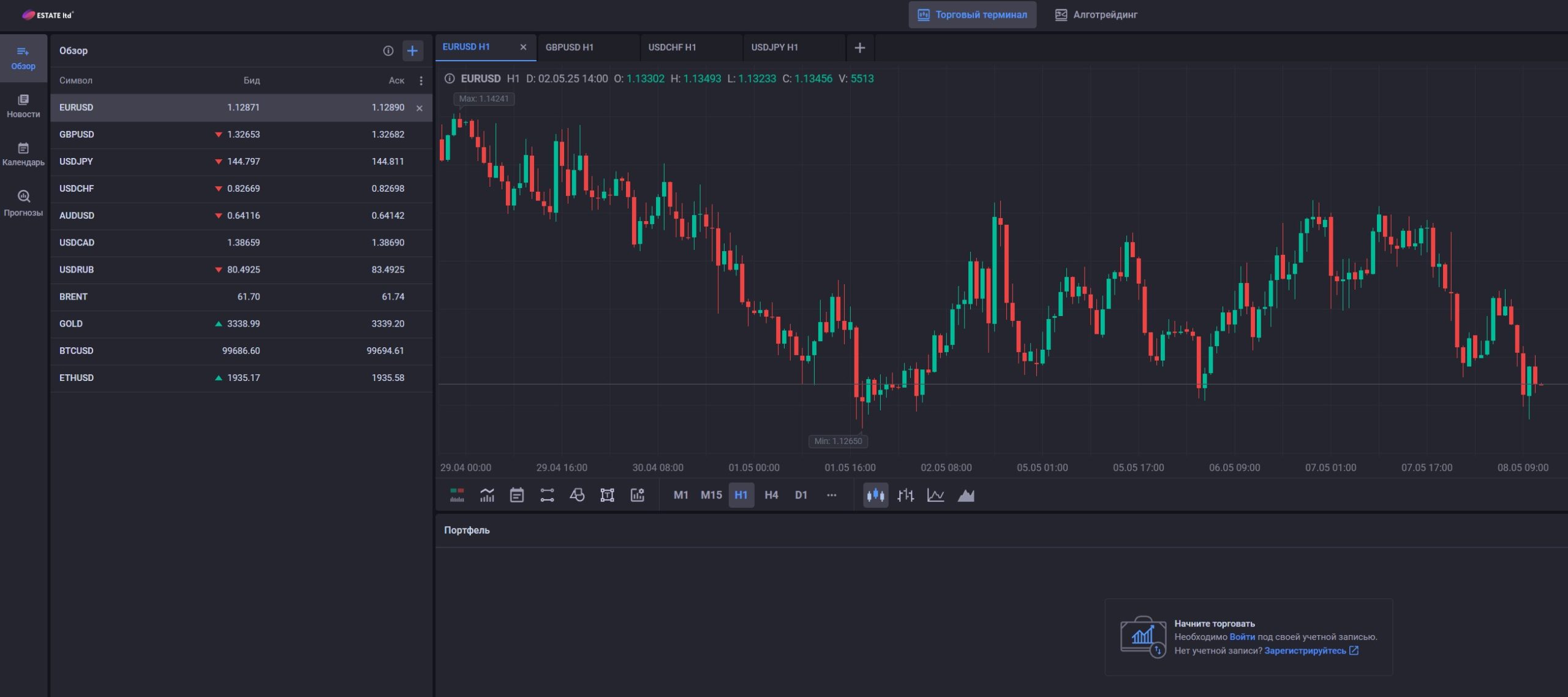Сам сайт -workspace.estateltd-trade.com — оставляет после себя странное впечатление. И нет, мы сейчас не о каком-то субъективном «не нравится». Проблемы бросаются в глаза сразу. Дизайн будто слизан с других таких же сомнительных ресурсов. Чуть ли не под копирку. Не удивимся, если вы где-то уже видели похожие цвета, структуру и даже тексты. Вкладки на сайте не работают, или работают, но так, будто их просто забыли доделать. И все эти «инструменты», которыми разработчики так гордятся — это, по сути, обычные графики.