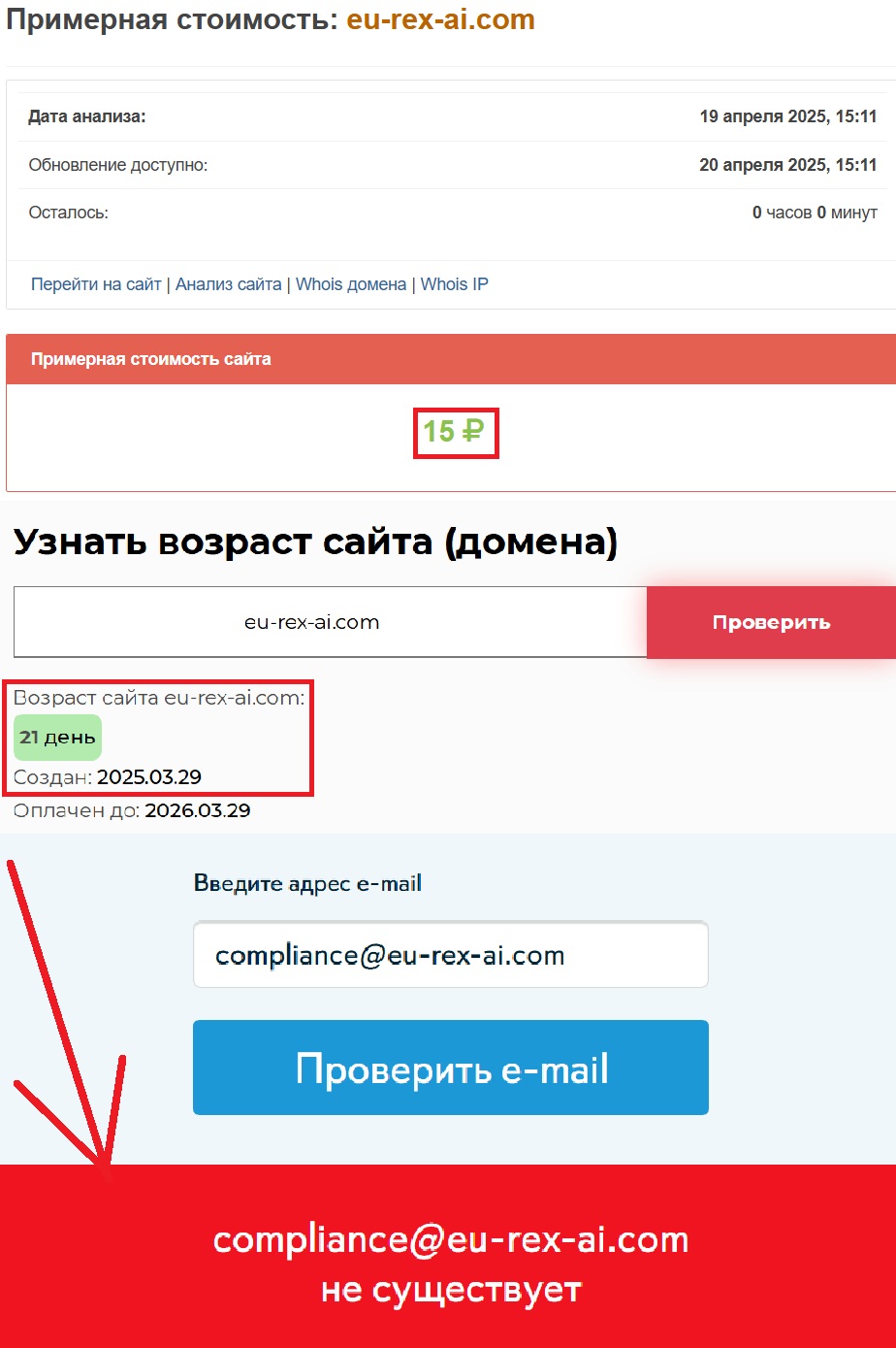 Что интересно — проекту всего 21 день. Даже месяца нет. Если быть точными, стартовал он 29 марта 2025 года. И теперь просто подумайте: может ли за такой короткий срок сформироваться действительно надежная инвестиционная структура? Конечно же, нет. А если вспомнить, что стоимость домена — ровно 15 рублей… Ну, мы же с вами понимаем, что это не цена сайта «финансовой компании международного уровня».