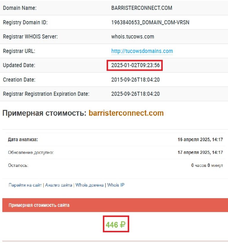 Шарлатаны заявляют о своем продолжительном периоде работы в юридической сфере. Но это не звучит уже так правдоподобно после анализа их веб-ресурса. Как выясняется, сайт был создан в 2015 году, однако 2 января 2025 года получил обновление, и только с этой даты здесь началась активная работа.