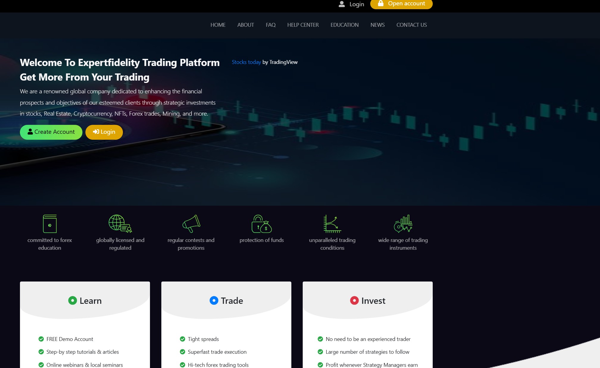 Начнем с самого базового — с того, как проект представлен в сети. Сайт expertfidelity.com не предлагает ничего, что хоть как-то выделяло бы его на фоне сотен других клонов. Те же шаблонные блоки, те же «инвестиционные инструменты», которые по факту не работают или ведут в никуда. Страницы открываются с задержкой, часть из них вообще не грузится. Дизайн не просто устарел — он будто скопирован с сайтов пятилетней давности. Где же тут инновации, о которых они так громко заявляют?