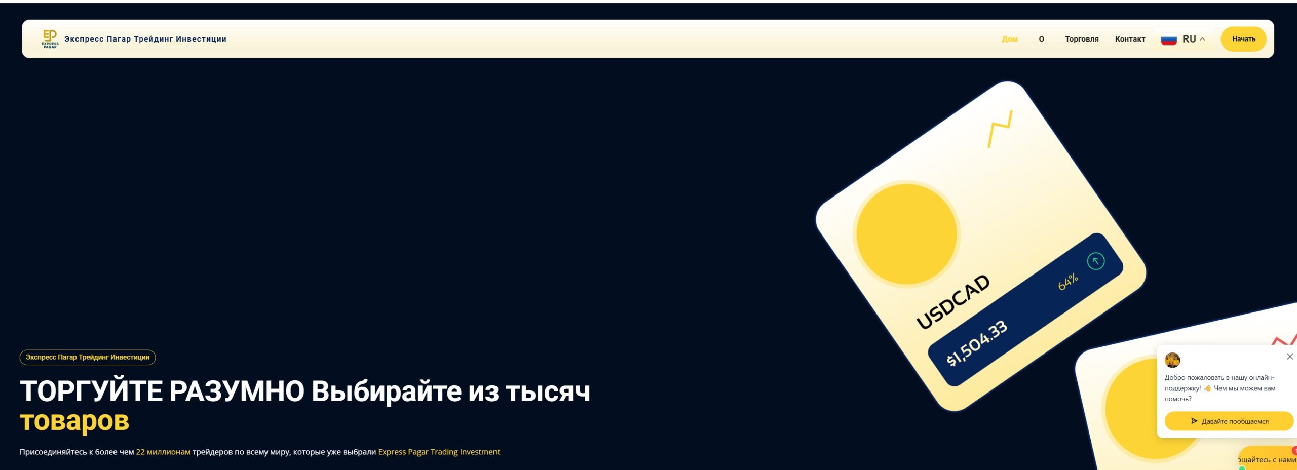 Когда мы впервые зашли на сайт expresspagartrading.com, сразу стало понятно — что-то тут не так. Знаете, бывает такое ощущение: вроде все на месте, а доверия — ноль. Простенький, однотипный дизайн, никаких уникальных решений. Такое чувство, что сайт собирали на скорую руку, по шаблону, который использовался уже десятки раз другими такими же «брокерами». Никаких юридических документов, никаких подтвержденных лицензий. Вообще. Вместо этого — графики, картинки, немного текста и стандартная форма регистрации. Все, точка.
