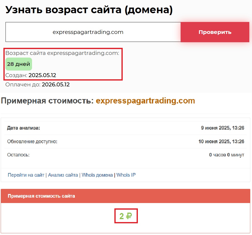 И как только вы копнете глубже, картина становится еще мрачнее. Проверка через сторонние сервисы показала, что сайт существует всего пару дней. Зарегистрирован 12 мая 2025 года. Но вам будут уверенно рассказывать, что компания работает на рынке с 2018-го, что у них сотни довольных клиентов и многолетняя история. На деле же — пустышка. Сайт-однодневка, созданный явно не для инвестиций. А для чего? Думаем, ответ очевиден.