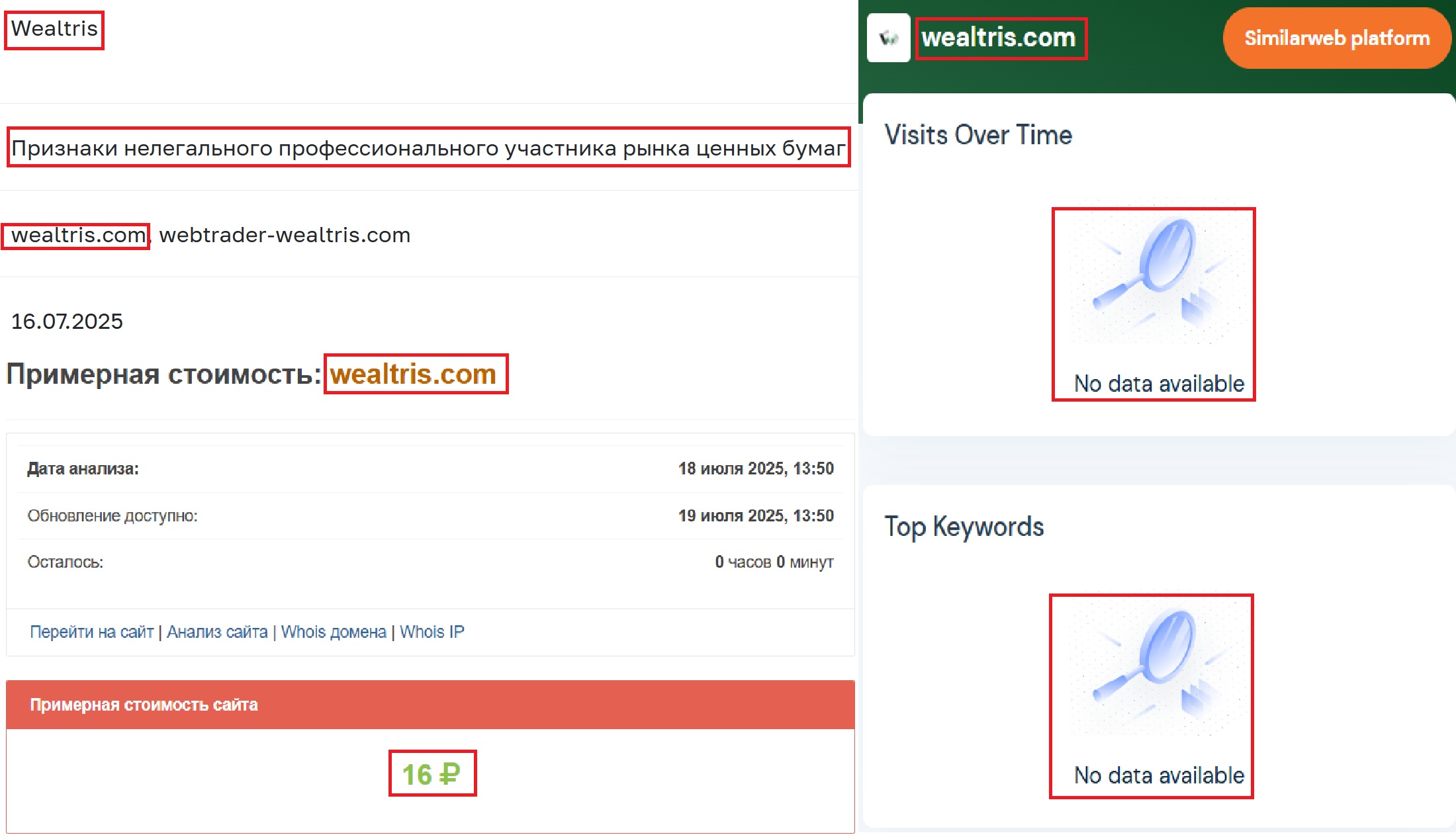 — Домен wealtris.com зарегистрирован только в начале июня 2025 года