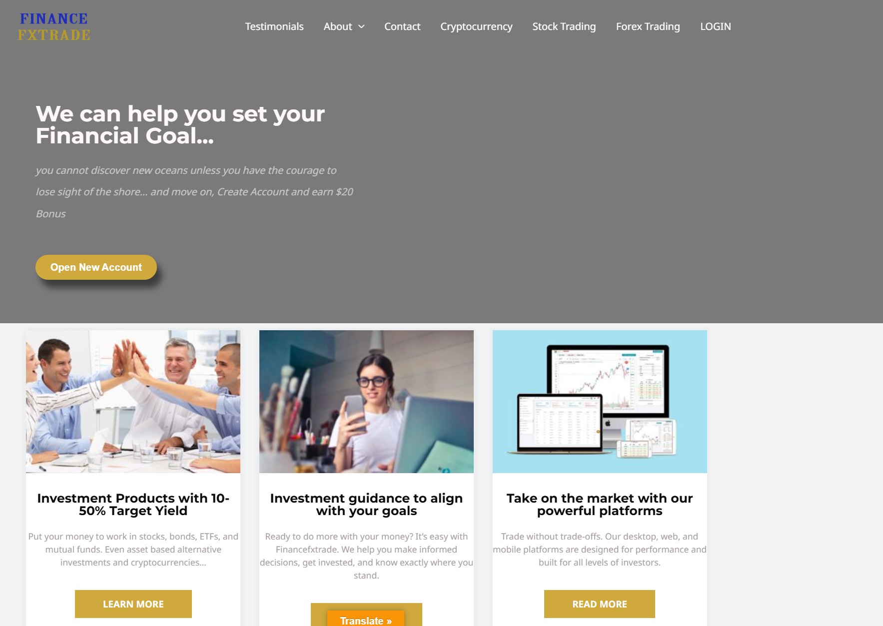 Мы с особым вниманием присмотрелись к сайту financefxtradespro.com, и, честно сказать, впечатления остались не самые лучшие. Даже наоборот — очень сомнительные. Сайт выглядит так, будто его собрали за полдня, а может, и того меньше. Все очень дешево, шаблонно, без какой-либо индивидуальности. Такое чувство, что ребята просто скачали готовый шаблон, вписали название и пару фраз о том, как они заботятся о клиентах. Вот и весь маркетинг.