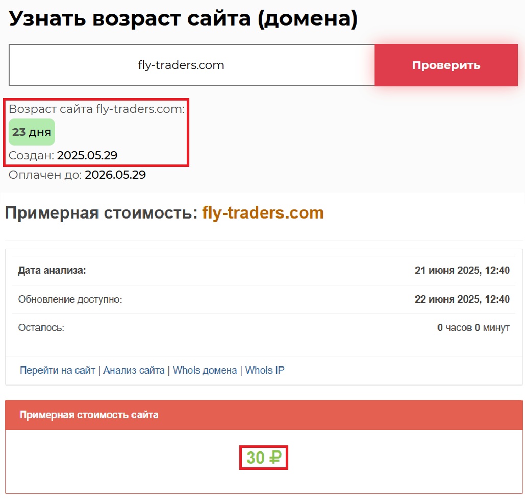 И вот здесь мы подходим к моменту, о котором нельзя молчать. Вся информация о “компании” — выдумана. Адрес? Фиктивный. Поддержка? Ее просто нет. А указанные способы связи — они, мягко говоря, нерабочие. Писать туда бесполезно. И что особенно важно — домен, на котором размещен сайт, начал использоваться всего 23 дня назад. Это все, что можно сказать о реальной истории Fly-Traders. Представьте себе, насколько это несерьезно.