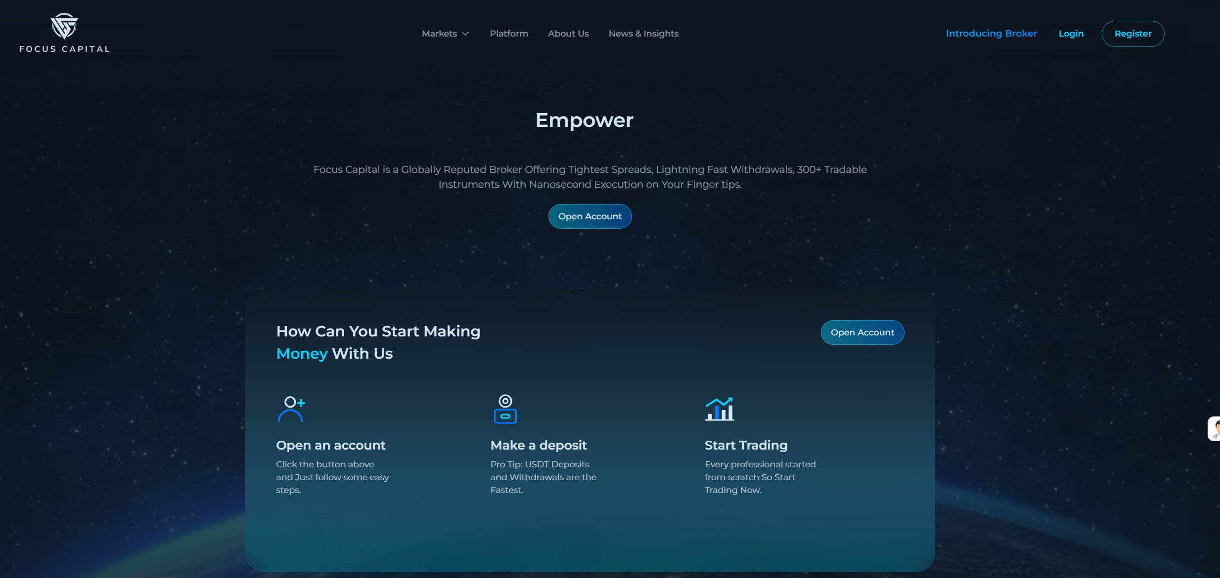 Порой кажется, что интернет захлестнула волна «супервыгодных предложений» по заработку. Сегодня чуть ли не каждый второй сайт обещает вам золотые горы, при этом особо ничего от вас не требует. Ну правда, звучит слишком красиво, чтобы быть правдой, не так ли? Вот и в случае с так называемым брокером Focus capital все развивается по знакомому сценарию. С виду — современная платформа, а по сути — очередная ловушка для тех, кто еще не научился отличать реальные инвестиционные предложения от дешевых разводов.