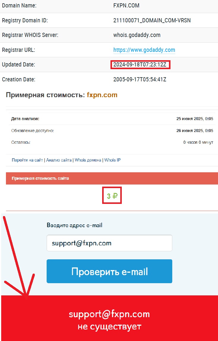 Контактная информация? Она либо отсутствует полностью, либо представляет собой нерабочую форму обратной связи. Да, вы можете оставить заявку. Да, с вами, возможно, кто-то свяжется. Но этот кто-то будет звонить с неизвестного номера, уговаривать вас внести депозит, рассказывать о «суперприбыльных» активах. А дальше? А дальше, как обычно — тишина. Аферисты даже указали фейковую почту support@fxpn.com.