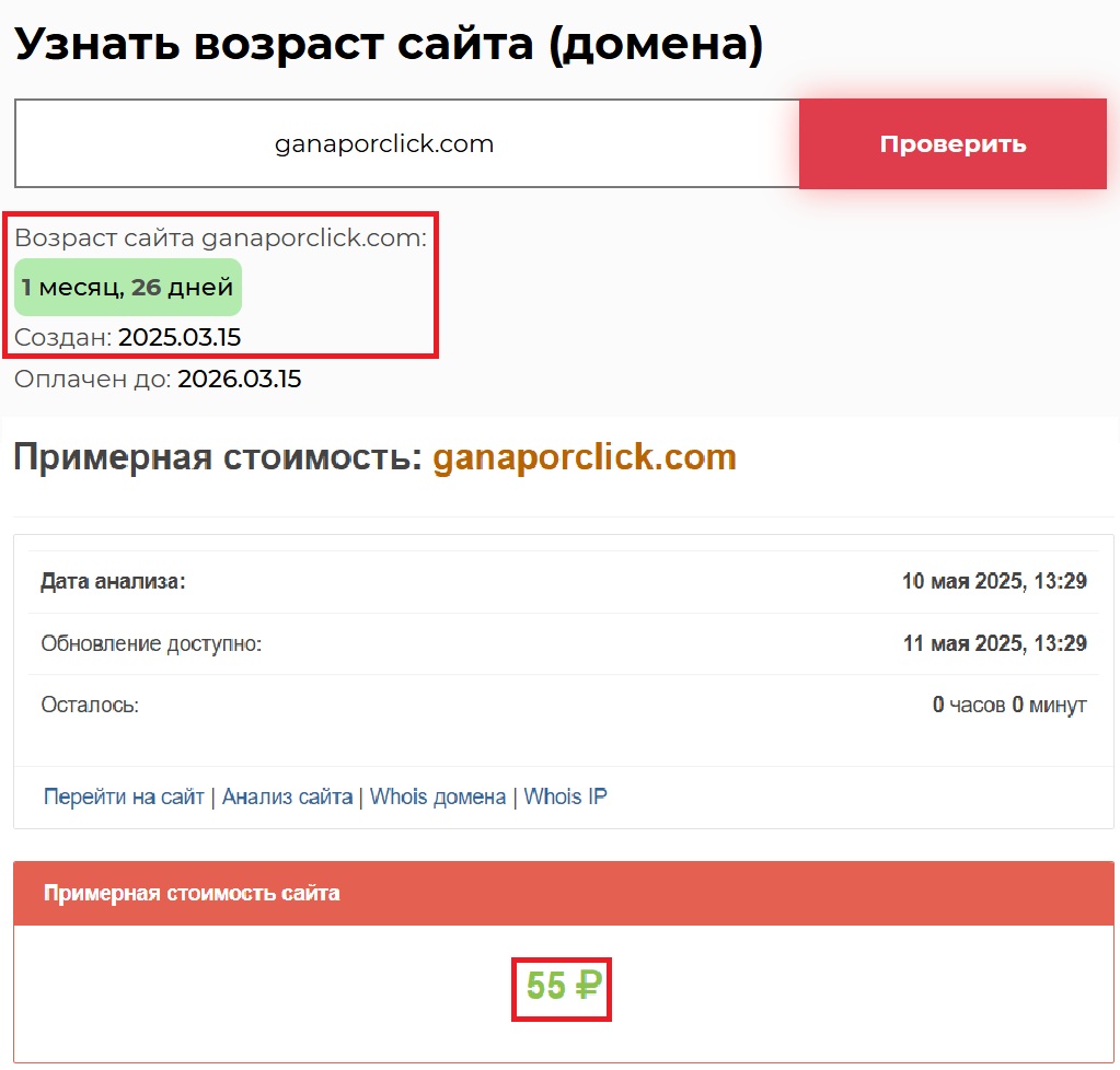Теперь — к фактам. Мы внимательно изучили, что собой представляет герой данного обзора. Оказалось, что сайт появился в сети всего 15 марта 2025 года. Меньше двух месяцев назад. Мягко говоря, этого недостаточно, чтобы заслужить доверие. Более того, цена домена — 55 рублей. Да-да, такая “серьезная компания” даже не потратилась на имя. Пожалуйста, скажите — вы бы доверили свои сбережения бизнесу, который не готов вложиться в базовые вещи?