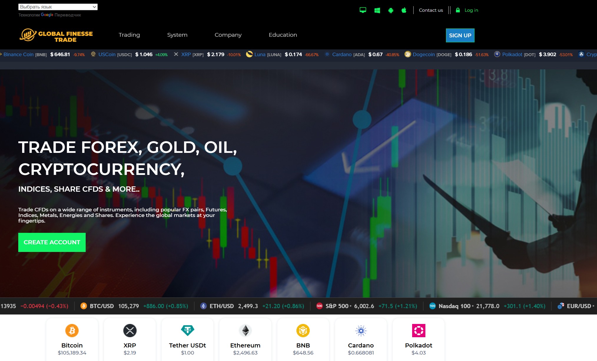 Начнем, пожалуй, с главного — доверия. Потому что именно оно рушится первым, когда сталкиваешься с Global Finesse Trade. Как только заходишь на сайт globalfinessetradepro.com, ощущение дежавю не покидает. Все выглядит слишком знакомо — те же блоки, те же фразы, тот же «инновационный» дизайн, который будто бы скопирован с десятка других мошеннических ресурсов. Тут нет ни намека на профессионализм. Просто дешевый шаблон, собранный наспех, с парой графиков и громкими заголовками. Но разве так должна выглядеть платформа, работающая с чужими деньгами?