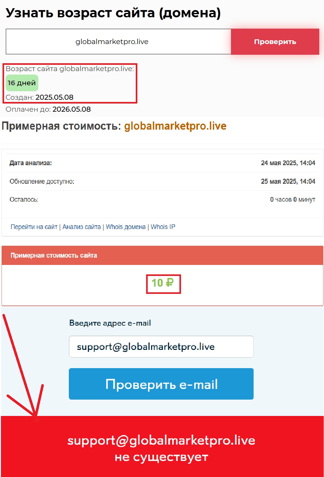 Кстати, о доверии. Одним из якобы «преимуществ» платформы указывается круглосуточная поддержка. Мы попытались проверить это. Адрес 3 Carson Rd. New York, NY 10002? Подделка. Телефон +1 (681) 541‑6583? Молчит. Электронная почта support@globalmarketpro.live? Не существует. Связаться с «представителями» компании невозможно в принципе. А без диалога, без нормального канала обратной связи — какой может быть сервис? Никакого.