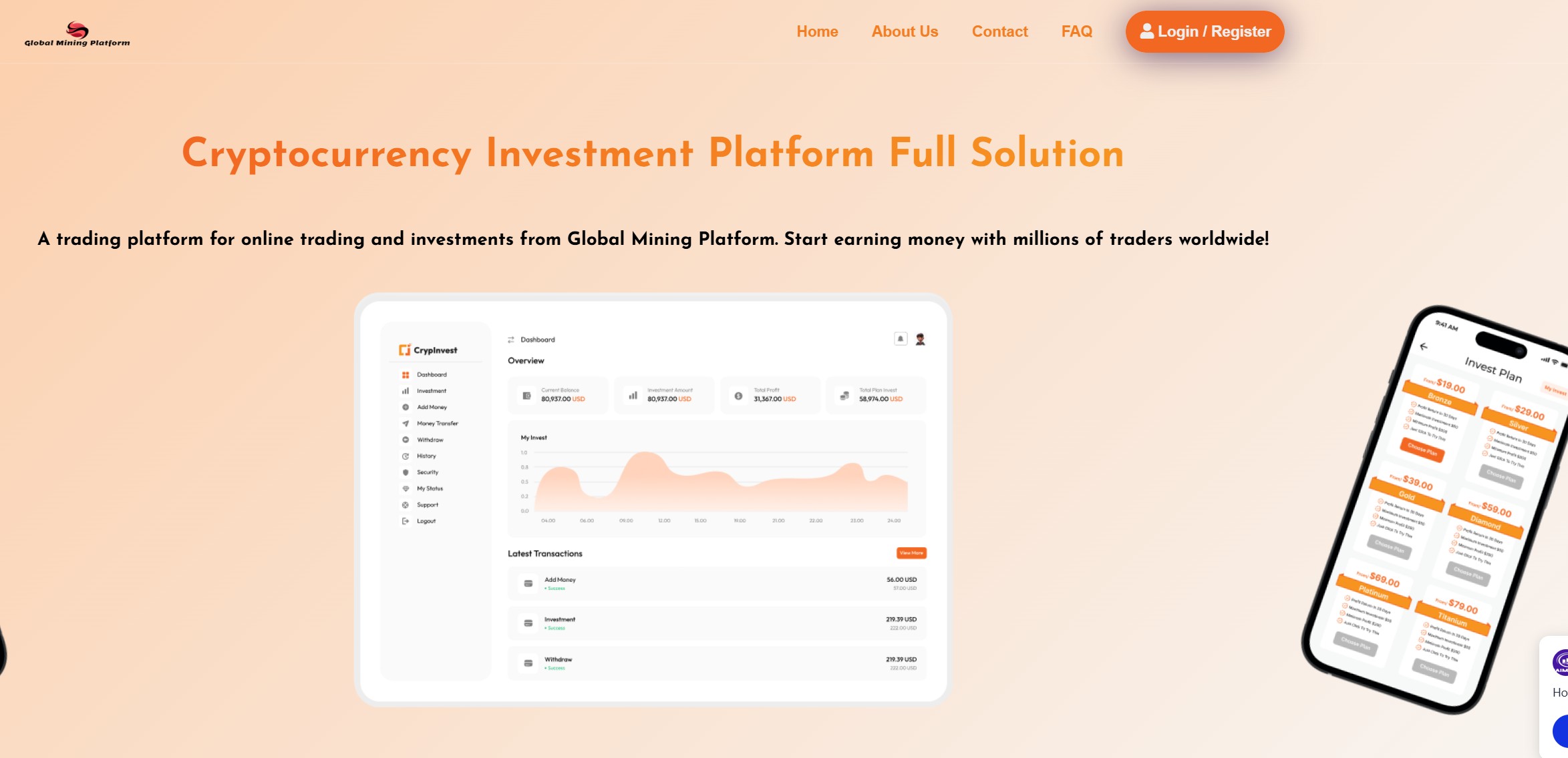 Сайт globalminingplatform.com — типичный представитель мошеннических схем. Он построен на устаревшем шаблоне, который, по всей видимости, давно кочует от одного лжеброкера к другому. И, по правде говоря, создается ощущение, что создатели даже не старались — просто вставили логотип, немного подправили цвета и решили, что сойдет. Увы, кто-то ведь действительно поверит. А потом пожалеет.