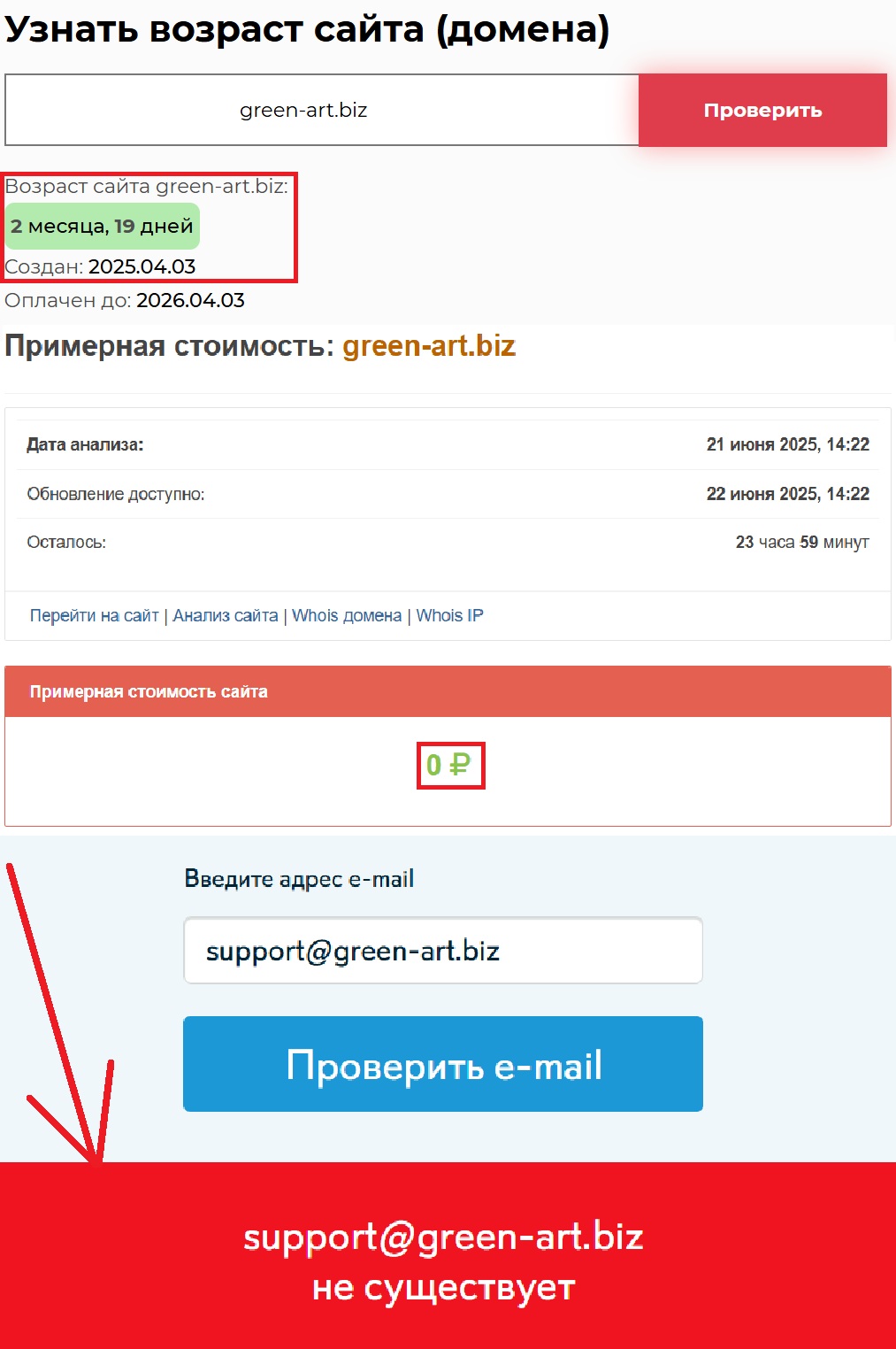 Они, конечно, пытаются убедить пользователей в своей «опытности». Говорят, мол, работаем давно, клиенты довольны, все честно и прозрачно. Ага, только вот проверка данных показывает немного иную картину. Сам домен был зарегистрирован только 3 апреля 2025-го.