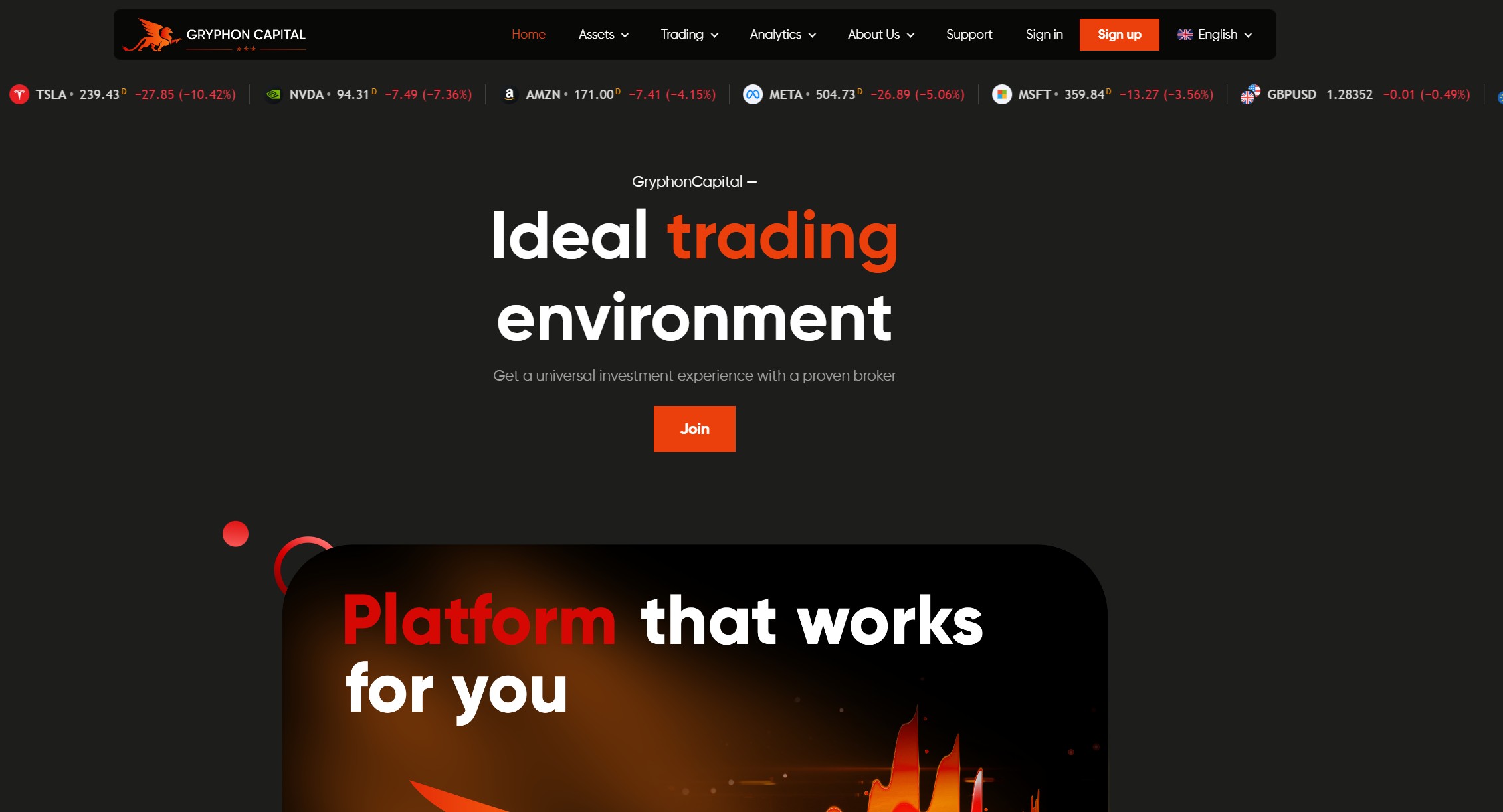 Сайт gryphoncapital.org — если честно, он не выдерживает никакой критики. Это типичный шаблон, слепленный на скорую руку. Графики какие-то странные — котировки все неактуальны. Некоторые вкладки просто не открываются. И все это якобы серьезная финансовая организация? Похоже скорее на плохо замаскированный лохотрон, чем на стабильную платформу. И, кстати, никто даже не пытался скрыть факт, что сайт не предназначен для реальной торговли — ну а что, времени же мало, нужно быстрее запускаться и собирать «вклады».