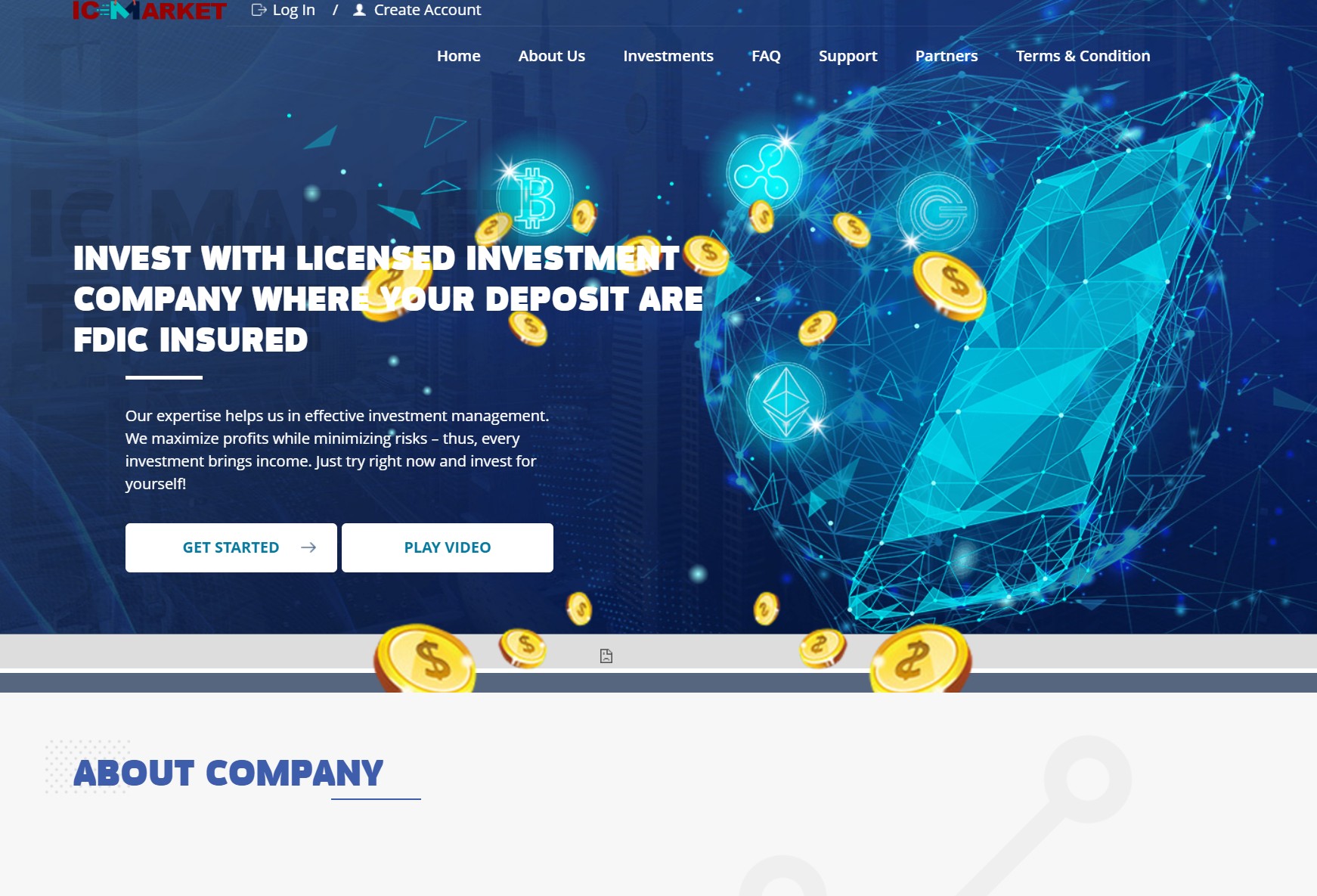 Первое, с чем сталкивается пользователь, — это сайт. Адрес у него, прямо скажем, подозрительный: ic-markttrd.com. Открываем страницу — и что мы видим? Устаревший дизайн, шаблонный интерфейс, минимальный функционал. Создатели явно не утруждали себя разработкой чего-то уникального. Такое ощущение, что они просто взяли чужой шаблон, заменили название, добавили пару своих слов — и вот оно, “инвестиционное чудо”.