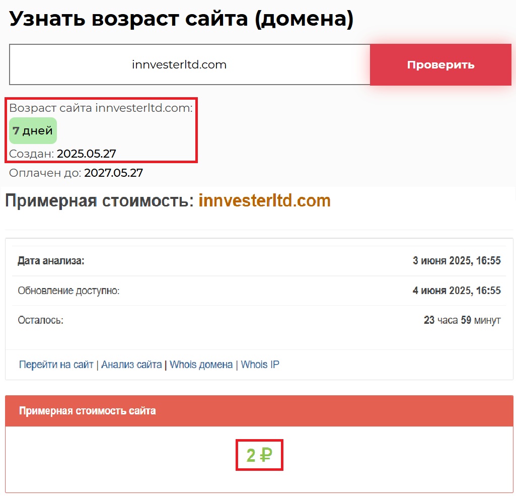 Мы, разумеется, проверили, как давно существует сайт. И тут все тоже предельно прозрачно — активная работа на домене началась только 27 мая 2025 года. То есть, по сути, это проект, которому и пары месяцев нет. Как можно говорить о каком-либо «опыте» или «надежности»? А еще один показательный момент — цена сайта. Два рубля. Выходит, создатели вложились ровно настолько, насколько это было необходимо, чтобы собрать деньги и уйти в тень. И это, пожалуй, говорит о многом. Серьезные компании в такое не играют. Настоящие брокеры инвестируют в имидж, в инфраструктуру, в поддержку. Здесь же — пустота. Абсолютная.