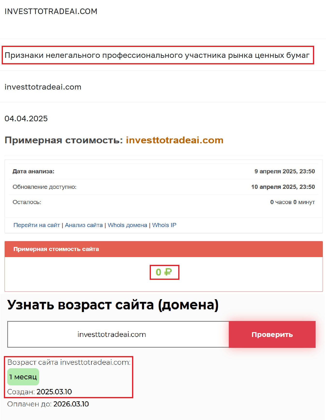 Проверка на Seolik показала, что стоимость сайта — 0 рублей. Это вообще откровенная клоунада, о каком сотрудничестве с профессионалами может идти речь? Конечно, как и все такие площадки, INVEST TO TRADE AI активно раздает свои ссылки через мессенджеры, через социальные сети. Все происходит по знакомому сценарию: сначала “эксперт” пишет вам, рассказывает о супервыгодных условиях, показывает фальшивые скриншоты “успешных сделок”, после чего кидает ссылку и уговаривает зарегистрироваться.