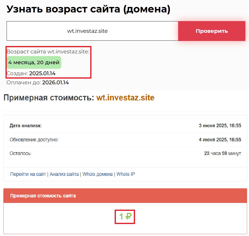 А теперь о самом интересном. Контора Investaz начала свою работу всего несколько месяцев назад. Конкретно — 14 января 2025 года. Это не опыт. Это даже не становление. Это просто запуск очередной однодневки, цель которой — собрать как можно больше денег и исчезнуть. И да, по нашим данным, домен был куплен буквально за один рубль. Мы не шутим. Это все, что стоила «надежная инвестиционная платформа» в глазах ее создателей.