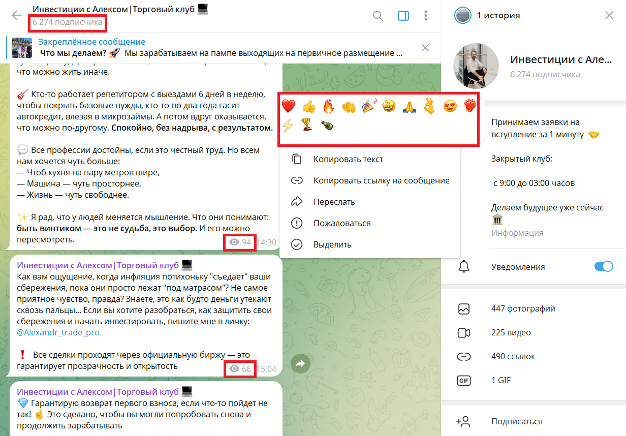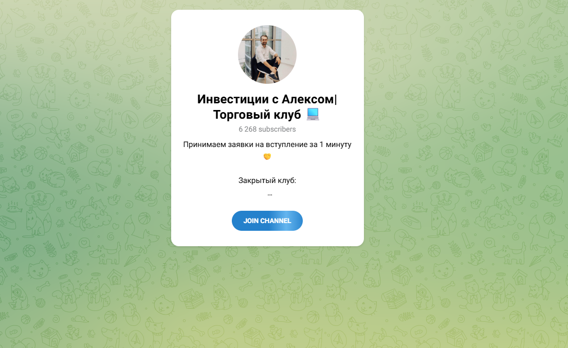 Основатель канала Инвестиции с Алексом|Торговый клуб, следуя классической схеме многих мошенников, решил начать представляться аудитории как опытный трейдер. Он предлагает юзерам возможность успешно инвестировать в крипту вместе с ним и, соответственно, зарабатывать на этом. Но, судя по выявленным фактам, доверять этому человек нельзя.