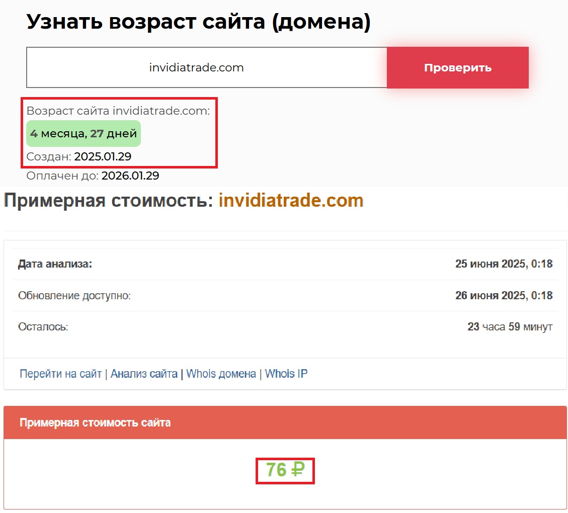 Проверка домена показала, что проект существует всего-то 4 месяца и 27 дней. Да, не годы, не даже полгода — всего несколько месяцев. При этом создатели проекта нагло заявляют о «богатом опыте» и «многолетней истории». Очевидно, они рассчитывают, что никто не станет это проверять. Кстати, оценочная стоимость сайта — 76 рублей. Давайте честно: за такую сумму никто не будет разрабатывать надежную платформу для инвестиций. Но в случае с аферами — это вполне логично. Вложений минимум, рисков — тоже. Как только проект начнет тонуть в жалобах, его просто закроют. А потом начнется все по новой, под другим именем.