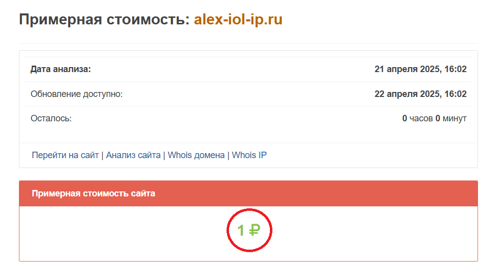 Сайт Иоля также кажется странным. Известно, что он был создан около 2 месяцев назад. Сервис представляет собой одностраничную платформу с максимально простым оформлением. Примерная стоимость домена составляет всего 1 рубль.
