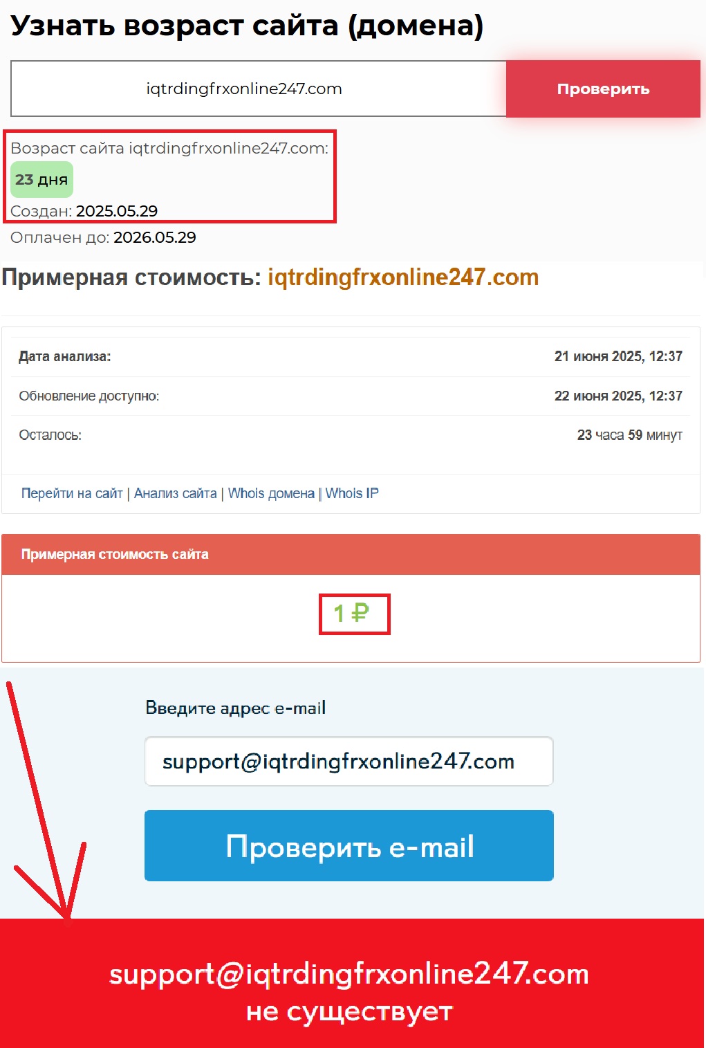 Письма, отправленные по адресу support@iqtrdingfrxonline247.com, остаются без ответа. Телефона, по которому можно дозвониться — нет. Да и зачем, правда? Ведь в их интересах, чтобы вы не задавали лишних вопросов. Получили средства — и «спасибо», до свидания. Мы понимаем, что в условиях нестабильности люди ищут способы сохранить и приумножить капитал. Но, пожалуйста, не идите туда, где вам обещают золотые горы в обмен на пару кликов. Это не бизнес. Это ловушка. Проверяйте платформы, требуйте доказательства, ищите лицензии, анализируйте репутацию. А если не уверены — лучше обойти стороной.