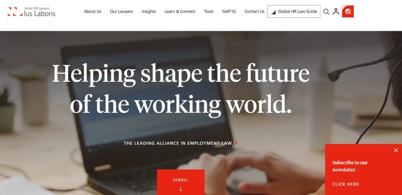Сайт iuslaboris.com построен на стандартном шаблоне, который не выделяется ничем интересным. Он предоставляет вам информацию о том, что вы будете работать с настоящими экспертами. Проблема только в том, что все использованные фотографии — стоковые, то есть они использовались уже на других ресурсах.