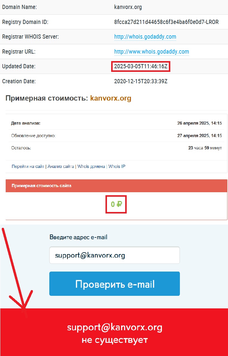 Мы тщательно изучили информацию о сайте и обнаружили любопытные детали. Формально домен существует с 15 декабря 2020 года. Звучит внушительно, правда? Более четырех лет на рынке — уже кажется, что перед вами серьезная компания. Но нет. Реальность, как всегда, прозаична: домен был куплен аферистами только 5 марта 2025 года. А до этого он попросту пустовал или использовался для других целей. Это старый прием — создать иллюзию «опыта» там, где его и в помине нет.