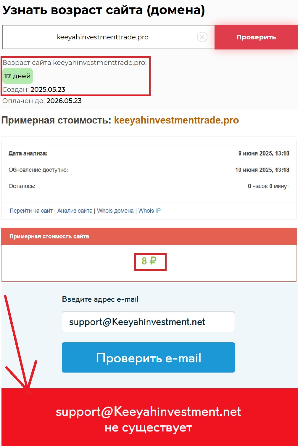 Отдельный разговор — юридическая сторона. Хотите узнать, зарегистрирована ли компания, имеет ли лицензии? Ответ короткий и простой: нет. Ни один регулятор, будь то европейский, азиатский или ближневосточный, не дал бы разрешения столь подозрительной структуре. Они даже не пытаются имитировать легальность — контактные данные ограничиваются одним почтовым ящиком support@Keeyahinvestment.net. Проверяли — фейк. Просто набор букв.