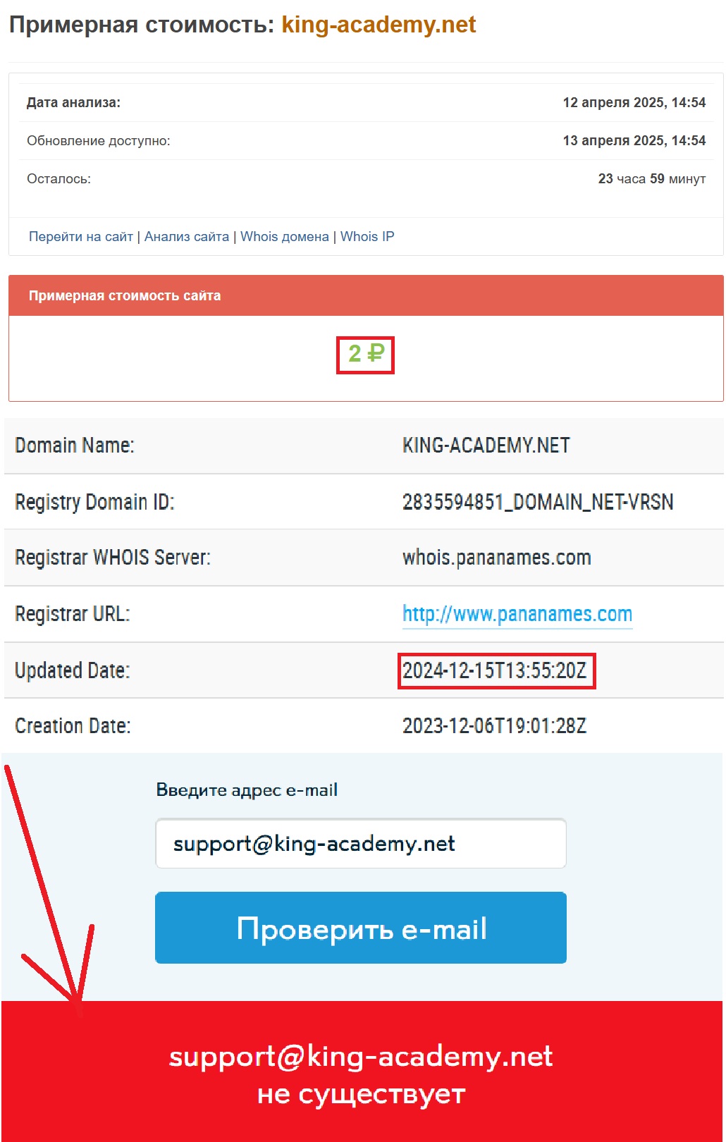 Но кто их целевая аудитория? Это, в первую очередь, пользователи стран СНГ. Почему? Да потому что именно здесь люди часто доверяют громким названиям. Аферисты это прекрасно понимают. И вот вы заходите на сайт king-academy.net, а там — ничего. Ни документов, ни лицензий, ни реальных контактов. Электронная почта support@king-academy.net фейковая. Телефон +442080896454 — аналогично. Кто они такие и где находятся — загадка. А ведь любая серьезная финансовая организация в первую очередь предоставляет способы связи.