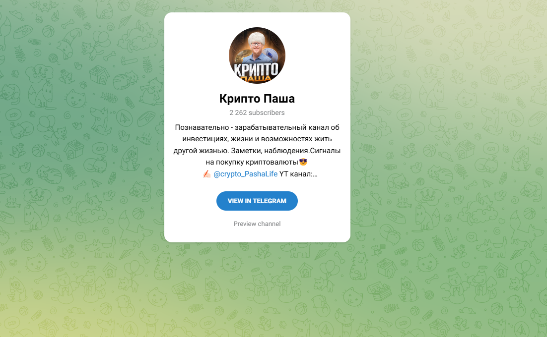 Автор паблика Крипто Паша обещает рассказывать об инвестициях и крипте. Также герой заявляет, что будет публиковать в ленте тематические заметки, собственные наблюдения по рынку и сигналы на приобретение цифровых монет. С учетом того, что заработок на криптовалюте сегодня является одной из самых актуальных тем, данный канал может многих заинтересовать. Но надолго в нем задерживаться либо связываться с его админом мы не советуем.