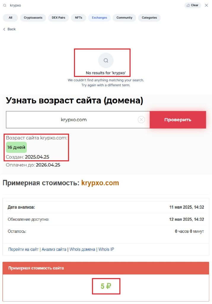 Таким же может быть исход взаимодействия с липовой биржей KrypXo. Что мы здесь имеем? Купленный домен, примитивный и дешевый дизайн, нерабочие кнопки, пустые разделы и полное отсутствие прозрачности.
