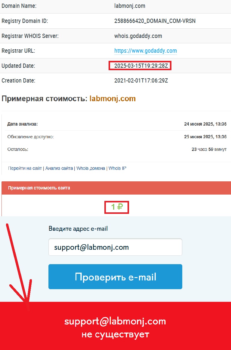 Ни лицензий, ни свидетельств регистрации. Вообще ничего. Попробовать связаться с представителями Labmonj тоже не получится. Телефон +357 96 391840, как и почта support@labmonj.com, существуют только формально — для создания иллюзии клиентской поддержки. Реальных ответов вы не получите. В лучшем случае — шаблонную отписку. А чаще всего — полное молчание. И все. На этом ваше общение заканчивается.