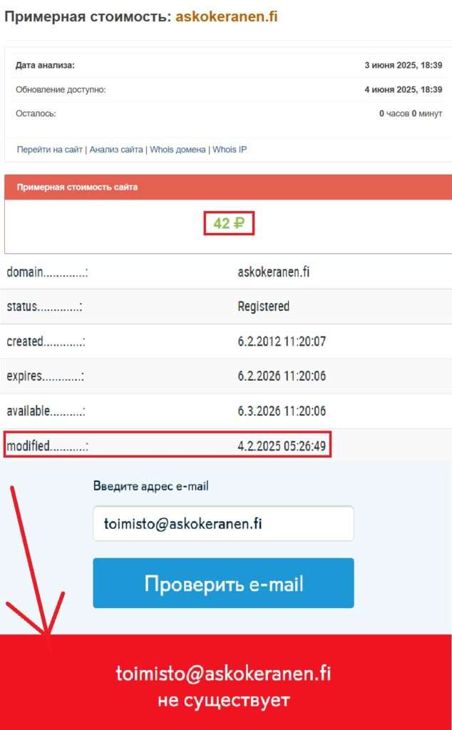 От сотрудничества с названой конторой можно ожидать только всего самого худшего: обмана и потери средств. Давайте посмотрим на сайт этого лохотрона. Домен, как выясняется, совсем не новый. Его просто купили 4 февраля 2025 года, внесли несколько изменений и стали использовать для развода доверчивых юзеров.