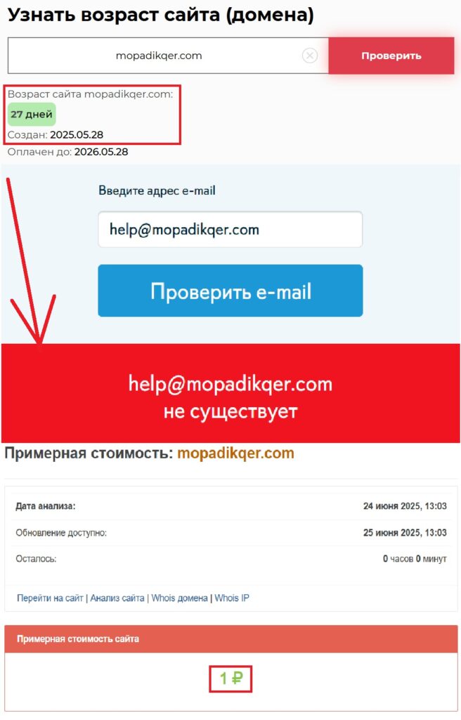 Автора портала заявляют, что работают много лет. Однако проверив домен фирмы, все становится ясно: площадке всего несколько дней (ее создали 28 мая 2025 года). С помощью вранья о своем опыте жулики пытаются создать ощущение надежности и солидности (хотя на деле не имеют ни одного, ни другого).