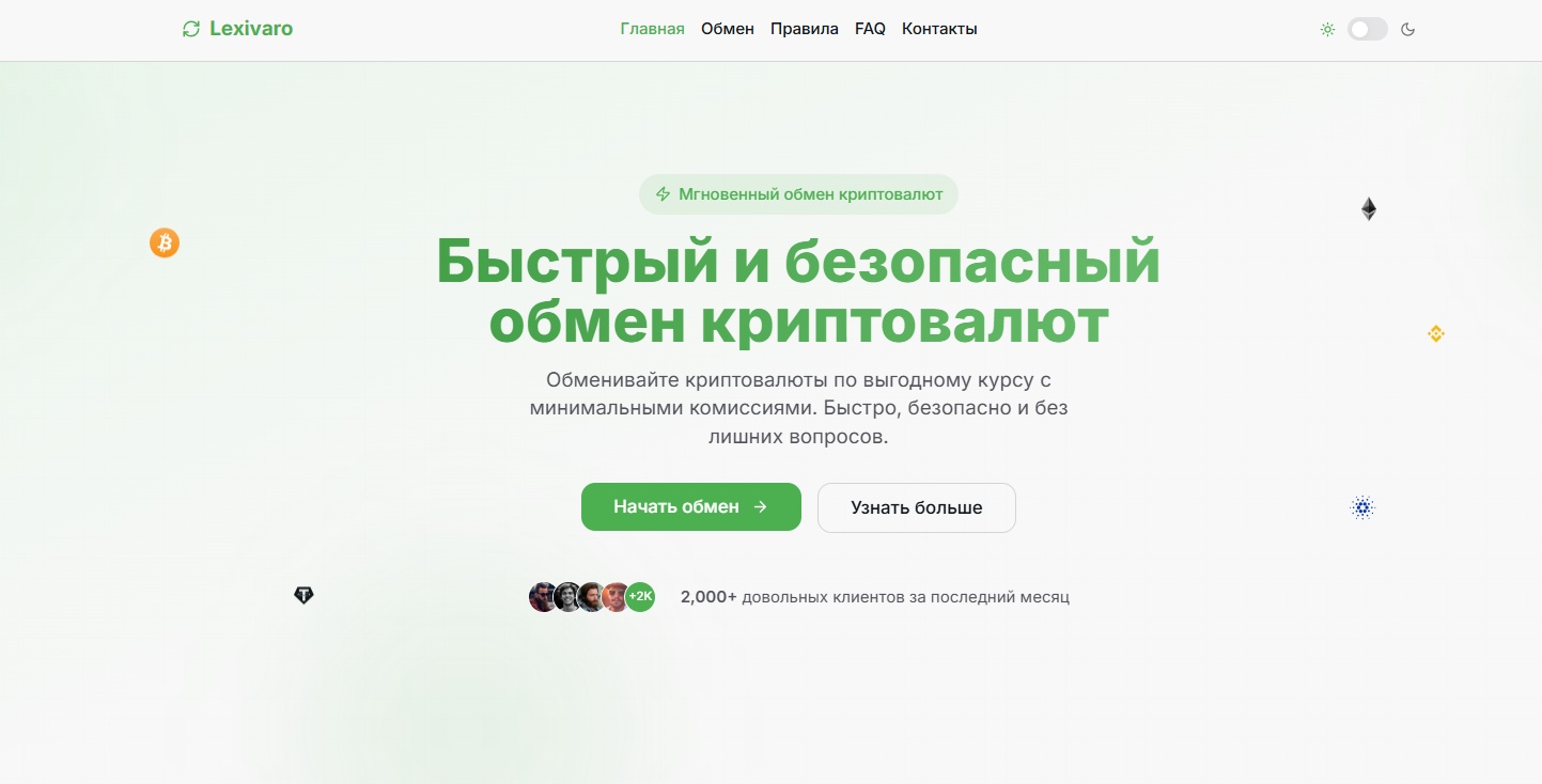 Сегодня речь пойдет об очередной фальшивке — Lexivaro. Как бы автора этого липового и опасного обменного пункта не старались, скрыть абсолютно все признаки мошенничества им не удалось. Данная площадка позиционируется, как надежный, безопасный и удобный обменник. Клиентам проекта обещают все по классике: минимальные комиссии, мгновенные транзакции, выгодный обмен цифровых активов. Но что же получают юзеры в результате? Определенно не то, что им гарантировали.