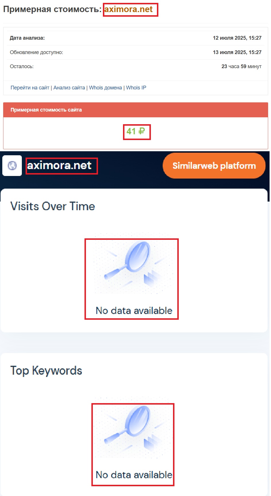 Указано, что они на рынке с 2013 года. Вот только если заглянуть в базу данных Whois (https://who.is/whois/aximora.net) и проверить регистрацию домена — выясняется совсем другое. Реальная дата создания сайта — 23 июня 2025 года. О каком «опыте» вообще может идти речь? А стоимость домена — 41 рубль. Для серьезной организации это абсурд. Ни о какой надежности тут не может быть и речи.