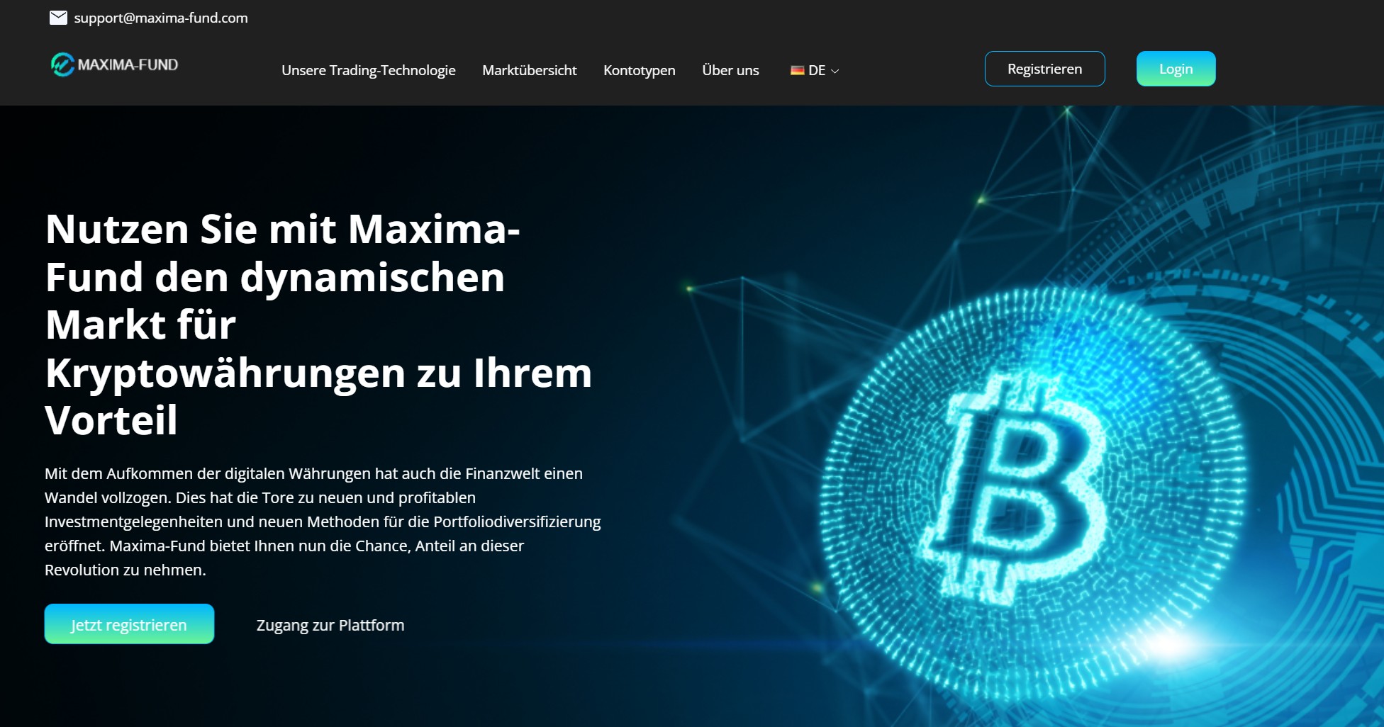 Первое, что бросается в глаза — это сайт. Зайдите на maxima-fund.com и просто посмотрите. Не нужно даже быть экспертом, чтобы понять: он сделан «на коленке». Все выглядит дешево, словно это копия копии шаблона, который уже сто раз использовался в других фейковых «брокерах». Честно, ощущение такое, что мошенники просто взяли старую заготовку, подкрутили цвета, вставили новое название — и понеслась. Никакого уникального функционала, куча пустых страниц, половина разделов не работает, а та, что открывается — выглядит, мягко говоря, подозрительно.