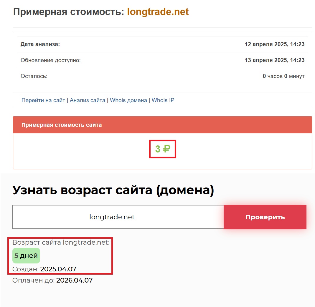 Возраст проекта тоже вызывает вопросы. Всего 5 дней. Проект, запущенный 7 апреля 2025 года, сейчас активно завлекает людей в свои сети, притворяясь успешной платформой с богатой историей. Интересно, кому вообще придет в голову поверить в такие сказки? Особенно когда знаешь, что стоимость домена — ровно три рубля. Нам бы, конечно, хотелось сказать, что все это — ошибка. Или что есть шанс, что проект окажется добросовестным. Но, увы, нет. Все говорит об обратном. И вы сами это видите. Отсутствие легальности, поддельная контактная информация, фиктивный опыт, нулевая функциональность — все это лишь маска, за которой скрываются самые обычные мошенники. Только теперь — в цифровом формате.