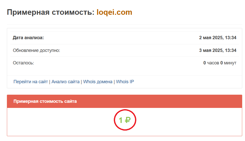 В ходе проверки можно выяснить, что домен кошелька был зарегистрирован чуть больше 2 месяцев назад. Его примерная стоимость равняется к 1 рублю, что указывает на дешевизну и банальность выбранного шарлатанами оформления. Это считается одним из тревожных сигналов.