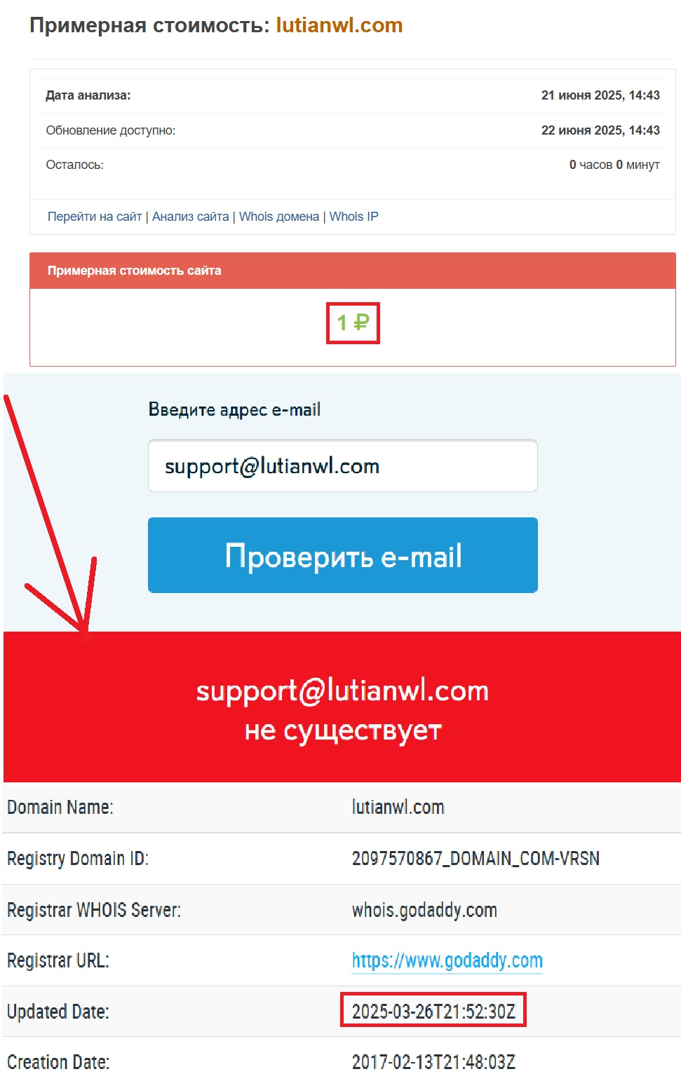 Мы провели собственную проверку. Что выяснилось? Формально сайт был зарегистрирован еще в 2017 году — на первый взгляд, как будто бы и есть опыт. Но если провести глубокий анализ, становится ясно, что проект начал работать только в конце марта 2025 года. Все остальное время домен просто лежал мертвым грузом. Так делают многие — покупают старый адрес, чтобы создать иллюзию надежности. На деле же, у проекта нет ни истории, ни репутации.