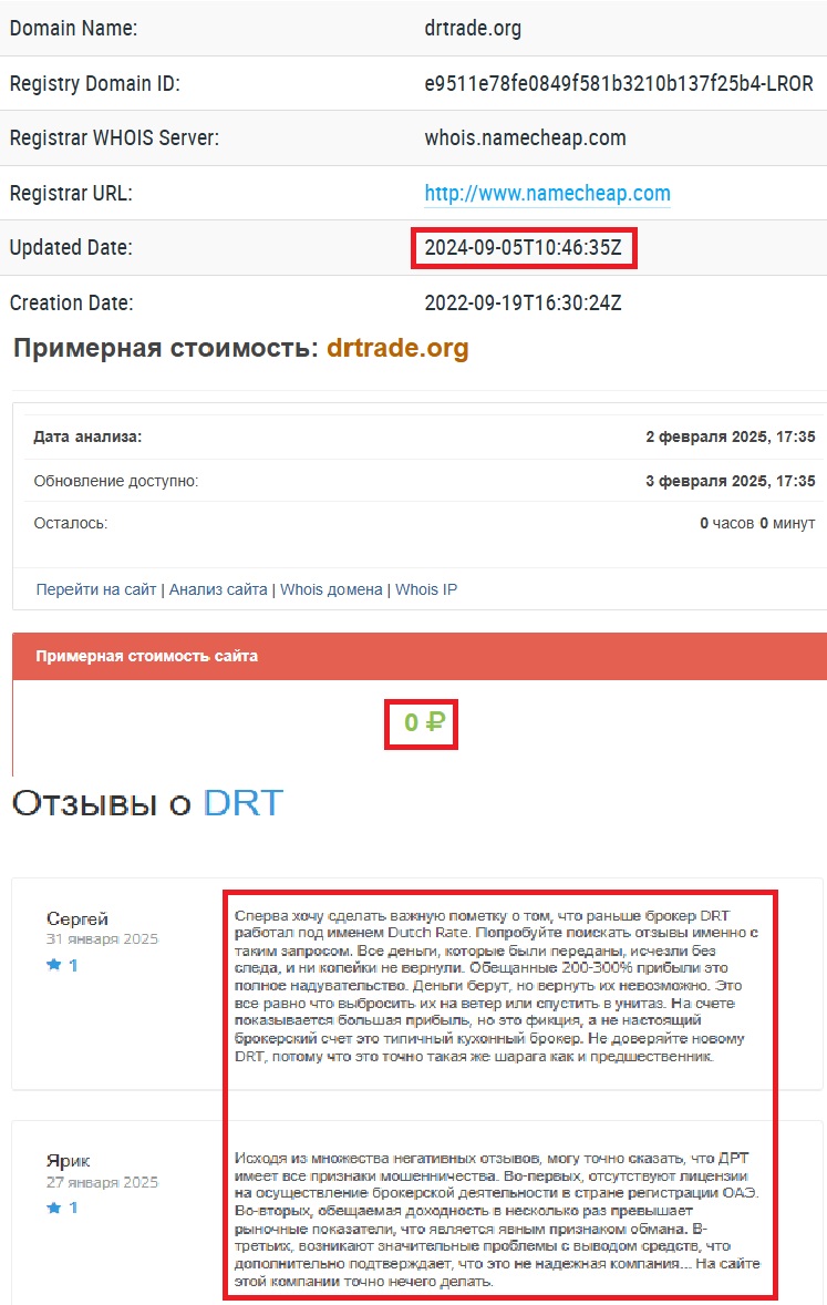 Нам рассказывают о многолетнем опыте, стабильных выплатах и профессиональной команде, но факты говорят об обратном — проверка возраста при помощи сервиса Whois показала, что возраст проекта — всего пару месяцев. Созданная 5 сентября 2024 года, эта контора уже успела оставить после себя огромное количество негативных отзывов. Конечно же, никакой реальной лицензии от надзорных органов у этого лжеброкера нет. DRT якобы ориентирован на российский рынок, но не имеет лицензии Центрального банка Российской Федерации.