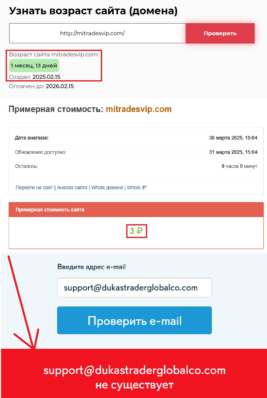 Но и это еще не все. Проекту Dukascopy Bank всего 1 месяц и 13 дней. Дата запуска — 15 февраля 2025 года. Серьезные финансовые компании работают годами, а такие однодневки появляются и исчезают в считанные недели. Стоимость этой жалкой подделки оценивает таким сервисом как Seolik в три рубля! Это или очень смешно или очень грустно, поскольку за такие деньги добиться реальной прибыли просто невозможно.