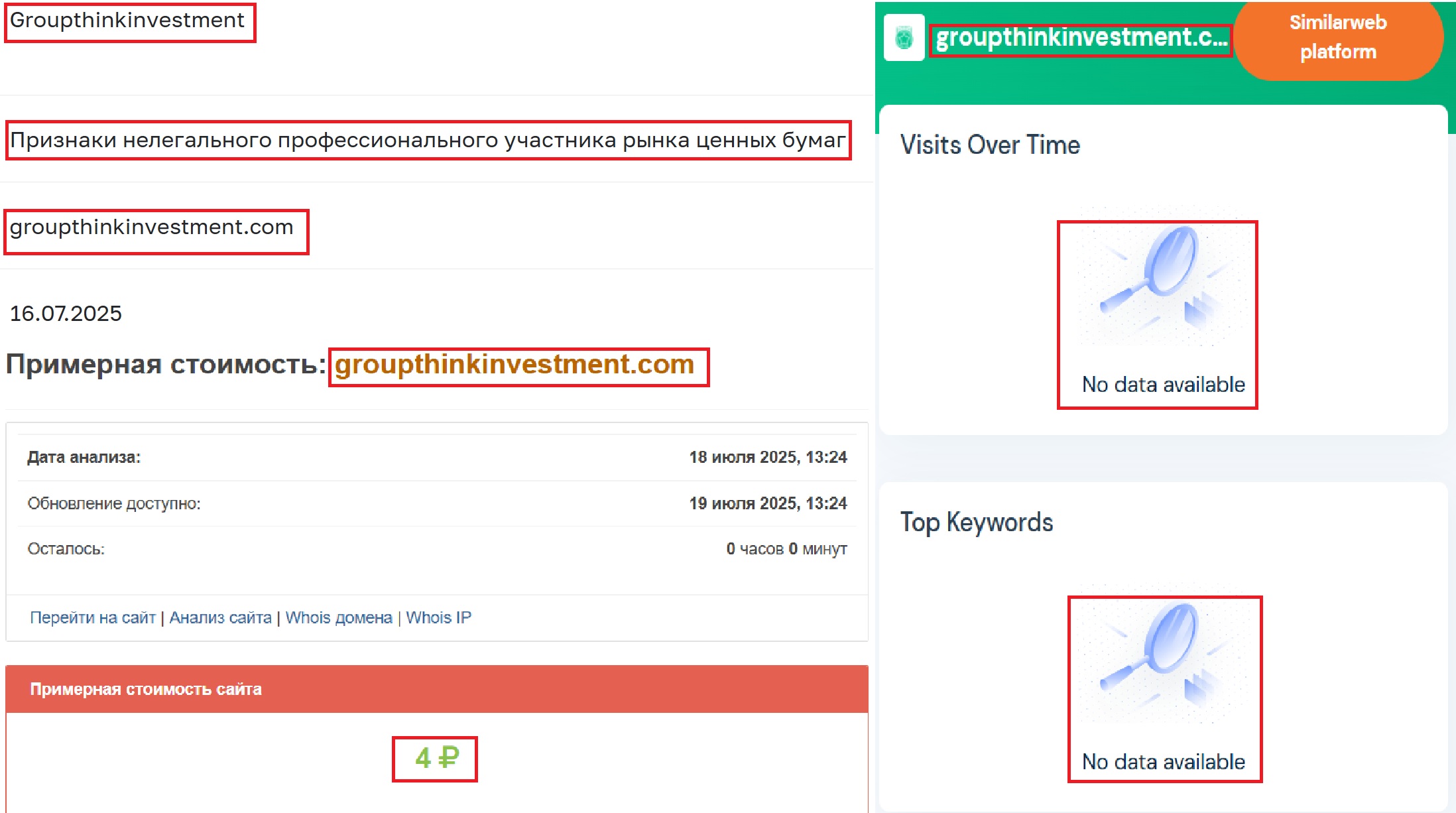 Whois (https://who.is/whois/groupthinkinvestment.com) — сервис, показывающий, когда зарегистрирован домен — подтверждает что регистрация прошла 29 июня 2025 года. Не девять лет назад, как утверждает компания, а буквально вчера.