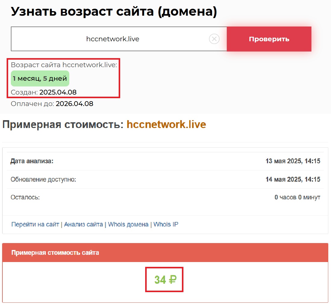 И вот вам интересная деталь: домен площадки зарегистрирован за 34 рубля. Да-да, столь маленькая сумма. А как думаете, будет ли серьезная команда, настроенная на долгосрочную работу, начинать с бесплатного шаблона? Вряд ли. Это больше похоже на спешку. Мол, слепили что было под рукой, кинули пару рекламных ссылок в соцсети — и погнали «поднимать» деньги с доверчивых пользователей. Финансовая деятельность требует прозрачности, доступности, репутации и, как минимум, открытости. Ничего из этого у H C C NETWORK нет. Зато есть красивая вывеска и громкие слова.