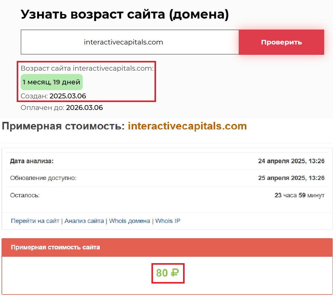 Да, стоимость ресурса — отдельная история. На момент проверки она составила всего 80 рублей. Больше, чем у многих фальшивых проектов, это правда. Но, будем откровенны, даже эта сумма в разы ниже минимального бюджета, который тратит реальный брокер на техническую часть. Настоящие компании вкладываются в свои платформы, они инвестируют в безопасность, в разработку, в лицензионную документацию. А здесь… просто дешевый шаблон, собранный наспех.
