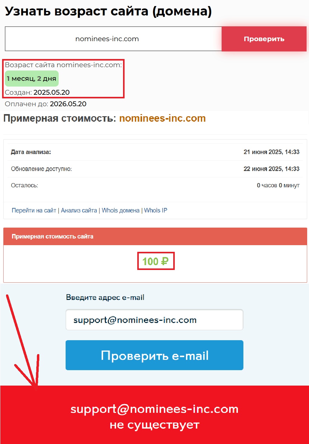 К слову, из всех возможных способов связи аферисты предоставили только электронную почту support@nominees-inc.com. И что вы думаете? Она фальшивая. Вы просто не получите ответа. Никогда. А обещания круглосуточной поддержки — не более чем обман. На деле же, как только вы попадаете в ловушку, вся «служба заботы о клиентах» растворяется, будто ее и не было.